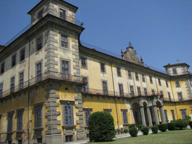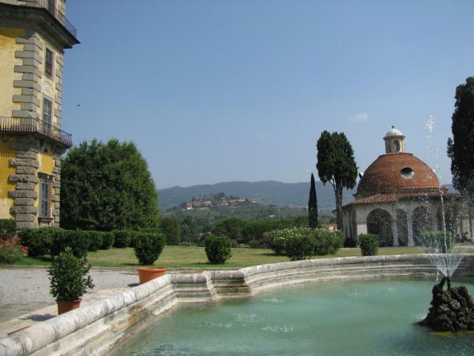 La Villa di Bellavista deve il suo nome allo splendido panorama sul Montalbano e sulle Cerbaie fino alla valle dell’Arno che si gode dalla collina dove sorge la villa. Un tempo ricca di giardini e adorna di fontane e statue, era considerata la villa più bella d’Italia dopo la reggia di Caserta. L’aspetto attuale risale a dopo il 1673, quando Francesco Feroni tornò in Italia e acquistò una tenuta di 45 poderi con edifici agricoli da Cosimo III de’ Medici.I lavori di progettazione della villa furono affidati a Antonio Maria Ferri, che terminò i lavori nel 1699. Nel 1939 fu acquistata dal Ministero degli Interni Direzione Generale dei Servizi Anticendi che provvide al suo restauro. Più tardi si collocò nella villa una casa di convalescenza per i Vigili del Fuoco dedicata a Tullio Baroni. L’edificio presenta quattro massicce torrette angolari e una balconata a livello del primo piano e un’altra simile, ma più breve, sul cornicione. Le torrette dalla parte della facciata sono sporgenti e conferiscono al fronte principale un aspetto curvilineo avvolgente. Le finestre sono profilate da cornici in pietra serena in contrasto con il bianco opaco degli intonaci. Al centro della facciata, all’altezza del tetto si trova un grande orologio entro un timpano decorato da volute. Il prospetto posteriore è caratterizzato da una scala a doppia rampa. La villa è incentrata su un magnifico salone centrale, che si estende in altezza su due piani; ha dei ballatoi con balaustre che servivano ai musicisti durante le serate da ballo. L’affresco sul soffitto riproduce il Trionfo della nostra santa fede, tema scelto da Fabio Feroni, quale combattente a Vienna contro gli ottomani. Le stanze, perlopiù affrescate da Pier Dandini e dal quadraturista Rinaldo Botti, sono allineate in modo da creare delle lunghe vedute prospettiche con le porte regolarmente allineate. La cappella fu decorata da Giovan Battista Ceceri. All’interno fu collocata per un certo periodo il cranio-reliquia di Santa Barbara.